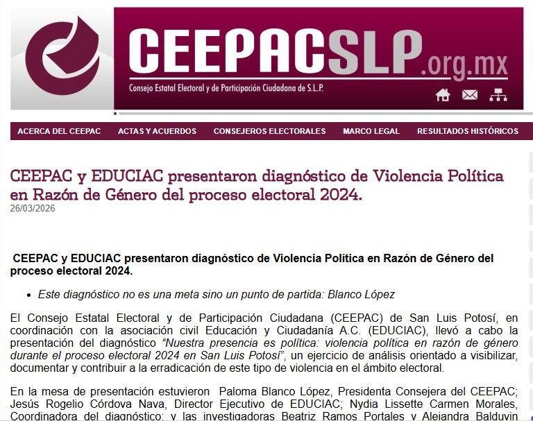 Diagnóstico sobre violencia política en razón de género (VPRG), durante el proceso electoral 2024 en San Luis Potosí